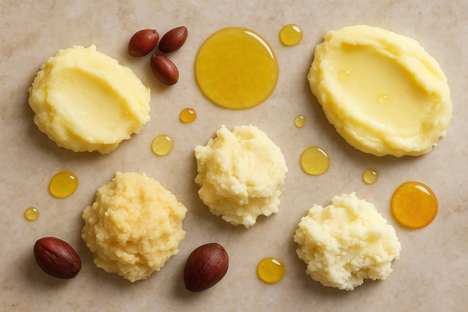 - Kokum Butter (India) – “The Barrier Builder” → Rich in stearic acid; strengthens skin barrier, locks in long-lasting moisture, prevents moisture loss, repairs cracks.